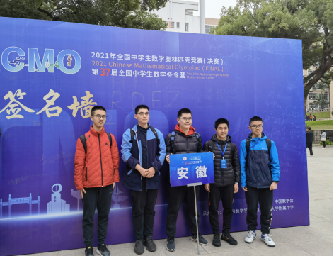 2021年12月19日至12月25日,第37届全国中学生数学奥林匹克竞赛(决赛)暨第37届全国中学生数学冬令营在福建省福州市福建师范大学附属中学举行。在此次比赛中,合肥一中入选省队的五名同学奋勇拼搏,获得了1金2银2铜的好成绩。其中,侯天尧同学以安徽省第一名的成绩荣获金牌,并入围北京大学英才计划;桂昊博、王逸彬两位同学荣获银牌,获得破格入围强基计划的资格;高二年级蔡泽生、叶明非两位同学荣获铜牌,未来可期。