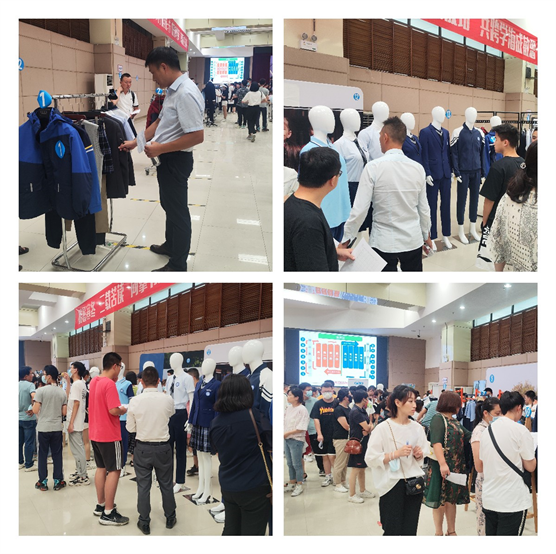 紧接着,张主任明确现场招标选用共分六个环节。即产品介绍环节,各竞标单位按照抽签顺序依次进入场地介绍产品;样衣展示环节,各位代表以年级部为单位分组依次行进查看样衣;评分投票环节; 统计票数环节,校服选用工作领导小组负责统计结果,现场公布;二轮投票环节,进入二轮投票环节的企业继续展示相应款类样衣;公布最终结果,校服选用工作领导小组现场统计、公布结果。同时,张主任还特别强调,为加大校服发展保障力度,学校对家庭经济困难等特殊群体学生无偿提供校服或减免部分费用,供货企业应按照合同约定提供相应服务,切实减轻其家庭经济负担。