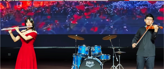 于弥漫的乐声与期待中,四位主持人走上舞台,拉开了音乐会的帷幕。作为开场曲的《喀秋莎》自是收获了满座掌声。当钢琴和小提琴相互交织,合奏出充满激情的喀秋莎时,整个空气都被音乐所充满。钢琴清晰而明亮的音色与小提琴如泣如诉的音响相互补充,营造出一种柔和而又饱满的音乐氛围。两种乐器的优美和谐,让人不由自主地陷入其中,感受到了音乐的魔力。用优美的旋律来讲述一个独特的故事,让人们重新认识音乐的魅力,感受到生命的温度和力量。