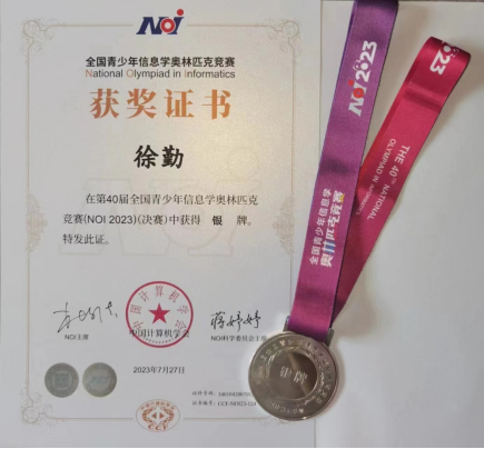 经过激烈角逐,合肥市第一中学2名入选本届全国青少年信息学奥林匹克竞赛的选手不负众望,取得佳绩,合肥一中(滨湖校区)贾文卓同学最终获得480分全国95名,合肥一中(瑶海校区)徐勤同学最终获得463分全国124名,他们分别获得全国银牌(全国二等奖)。他们也将获得清北等著名大学“强基计划”破格资格。