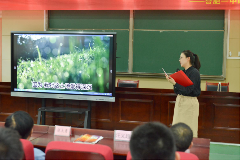 活动的高潮部分,是博士生姜慧深情朗诵艾青的名篇《我爱这土地》。在姜慧的引领下,全场学生共同诵读了最后两句:“为什么我的眼里常含泪水?因为我对这土地爱得深沉。”这不仅是对艾青诗歌的致敬,更是对祖国深情的表白,激起了在场师生的强烈共鸣。