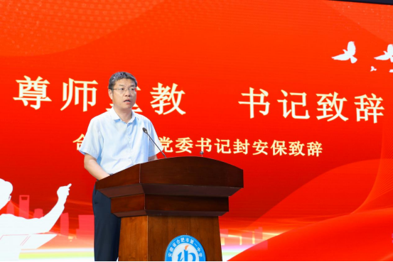 活动在国歌声中拉开大幕。随后,封安保首先致辞,他指出,作为有着122年历史的名校,合肥一中注定要承载着创新与变革的使命。2020年,合肥一中教育集团正式成立,学校迎来新的发展时期。今年,随着淝河校区建成招生,学校已拥有完整的三个校区,在校学生已超万人,目前长江路校区已着手校舍优化,明年,合肥一中教育集团将形成一校“四驱五翼”的教育格局,这就需要更多的合一人投身到伟大的教育事业中,以个人的快速成长促进学校的不断壮大。对于未来教育的新挑战,封安保希望大家牢记习近平总书记对广大教师的殷切期望,坚定理想信念,承载着传播知识、传播思想、传播真理,塑造灵魂、塑造生命、塑造新人的时代重任。最后,封安保希望新入职的老师,要坚信自己的职业选择,尽快融入到合肥一中这个优秀的集体中,早成名师。