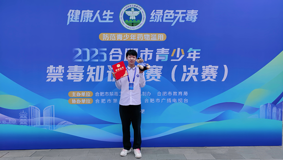 合肥一中始终高度重视学生的全面发展与健康教育,积极开展各类禁毒宣传与知识普及活动,将毒品预防教育融入日常教学与校园文化中。陈思源同学此次获奖,既是其个人优秀综合素质的沉淀,也是学校长期以来坚持“立德树人”、注重培养学生社会责任感的成果体现。