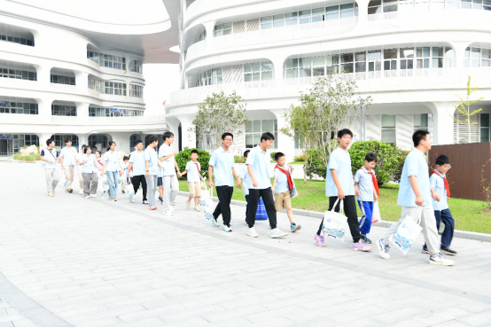 10月8日下午,合肥一中瑶海校区化身“科技探索乐园”,一场以“科技领航,薪火相传”为主题的“大手拉小手”跨校交流活动暖心开展。活动深度践行立德树人根本任务,依托合肥一中“怀天下抱负,做未来主人”的校训精神,以科创教育为纽带,辐射优质教育资源,搭建中小学生成长衔接桥梁。合肥市师范附属小学三年级近100名学生及家长、合肥一中50名学生志愿者与部分教师共同参与,在沉浸式体验中感受科技魅力、共绘成长蓝图。
