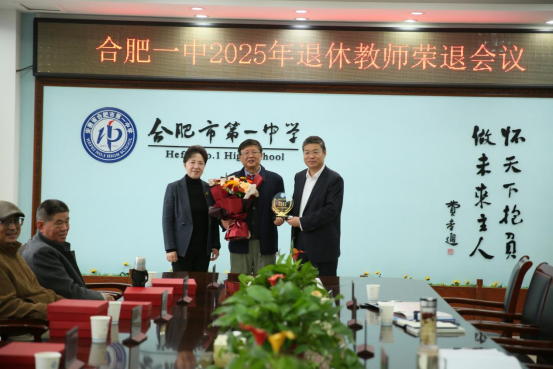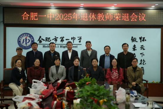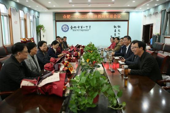 2025年11月 6 日下午,合肥一中 2025 年教职工荣休茶话会在滨湖校区行政楼六楼会议室隆重举行。校党委书记封安保,党委副书记、校长吴英明,党委委员、副校长张大勇、尤光雷、肖琼,校工会主席孔华与2025年光荣退休的教职工欢聚一堂,共忆耕耘岁月,共话未来新程。本次活动由尤光雷主持。