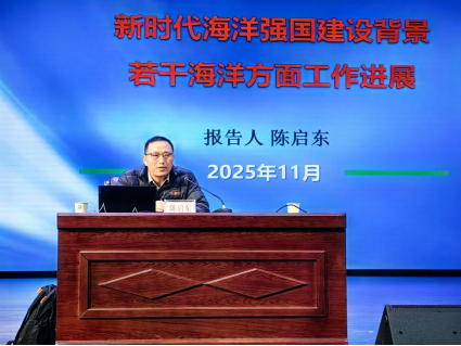 开幕式后,活动进入主题交流环节,该环节由合肥市第四十六中学王盈老师主持。活动首项议程为专家报告环节。自然资源部南海发展研究院遥感测绘室副主任、高级工程师陈启东博士发表了主题为《海洋强国战略下的海洋科学教育》的专题报告。