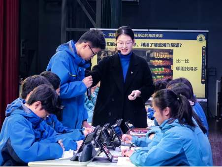 随后,初高中海洋科学衔接教育教学展示环节依次开展。合肥市第四十六中学王醒老师执教《中国的海洋资源》一课,运用小组调研、AI探究活动等多种教学方法,从中国海洋资源的数量、类型、分布、开发利用方式、背后起支撑作用的科学技术和科学家、如何保护海洋等多个方面,生动阐释了有关中国海洋资源的多层次知识,展望了逐梦深蓝、共建海洋强国的美好愿想。