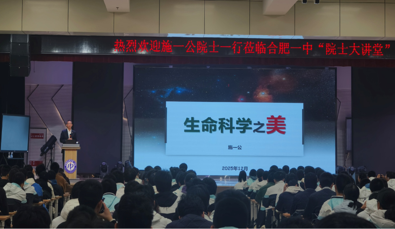 冬阳暖照滨湖畔,雅韵风传学术堂。2025年12月3日下午1时,合肥一中滨湖校区学术报告厅内座无虚席,师生与慕名而来的家长们屏息以待。当中国科学院院士、西湖大学校长施一公稳步登台,全场瞬间爆发雷鸣般的掌声,为期一个半小时的“院士大讲堂”正式拉开帷幕。本次活动由校党委书记封安保主持。