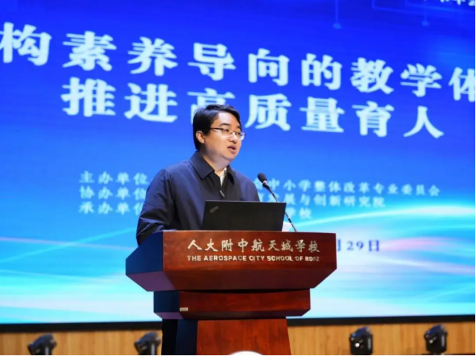 本次年会以“建构素养导向的教学体系,推进高质量育人”为主题,由中国教育学会中小学整体改革专业委员会主办,北京圣陶教育发展与创新研究院协办,人大附中航天城学校承办,重点围绕课堂变革、核心素养落地、教育评价创新与人工智能技术赋能等方向开展系统研讨。在11月28日的主旨报告环节,中国教育学会副会长陆云泉、海淀区教工委书记杜荣贞等领导出席并致辞,北京大学、清华大学、北京师范大学等知名高校专家发表高质量报告,从国家教育战略视野出发,为参会教师带来前沿理论与改革方向启示。现场学术氛围浓厚、思想交流深刻,为深化核心素养导向的教学体系构建提供了权威引领。