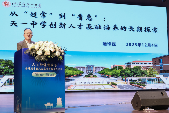 江苏省天一中学执行校长陆锋磊聚焦创新人才培养议题分享该校的实践探索。他指出,校园文化与办学理念是创新人才培养的深厚土壤,天一中学以好奇心为起点,引导学生自行设计、开展个性化活动。在课程育人方面,学校精心构建课程基地群与丰富多元的课程体系,以项目研究为重要载体,有力促进学习内容与学习方式的深度变革。此外,天一中学还重视课堂中AI技术的利用,为创新人才培养注入科技动力,助力学生实现全面发展与个性成长。