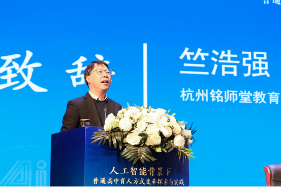 竺浩强着重强调教育科技融合的重要性,表示铭师堂深耕教育科技领域19年,与全国学校携手聚焦办学痛点与学生成长需求,推动教科研与数字技术深度融合,打破区域资源壁垒,助力更多学生享受均衡优质教育资源。同时,他还分享了高考命题引入人工智能技术防雷同、假期管理数字化重构等教育变革趋势,指出技术需融入教育情怀,避免迷失于数据洪流。