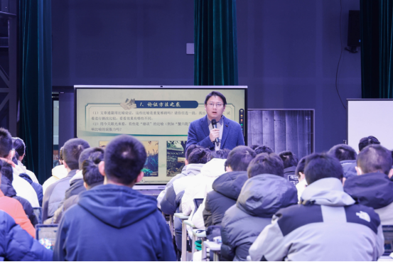 12月5日全体交流活动在合肥一中滨湖校区端馥堂开展,活动由肖琼主持。活动伊始,合肥一中语文教师吴鹏程聚焦AI赋能教学这一前沿课题,开展了一堂别开生面的《劝学》公开课。吴鹏程从概念、论证、价值三个关键维度出发,基于内涵之惑、论点支撑之惑、论证方法之惑、价值之惑四个切入点,利用智慧平板和AI工具引导学生深入理解文章内容,激发学生思考经典在当代的价值,为传统文言文教学与现代科技融合提供了生动范例。