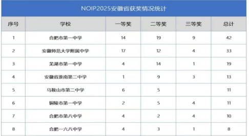 近日,2025年全国青少年信息学奥林匹克联赛(NOIP 2025)获奖名单正式揭晓,作为本次安徽赛区赛事承办方的合肥市第一中学,其信息学竞赛学子不负众望、勇创佳绩。据悉,该校共有14名学子荣获一等奖,19名学子荣获二等奖,9名学子荣获三等奖,其中一等奖人数位居全市之首,全部获奖总人数更远超安徽省其他学校总和,为合肥一中信息学竞赛发展史再添浓墨重彩的一笔。