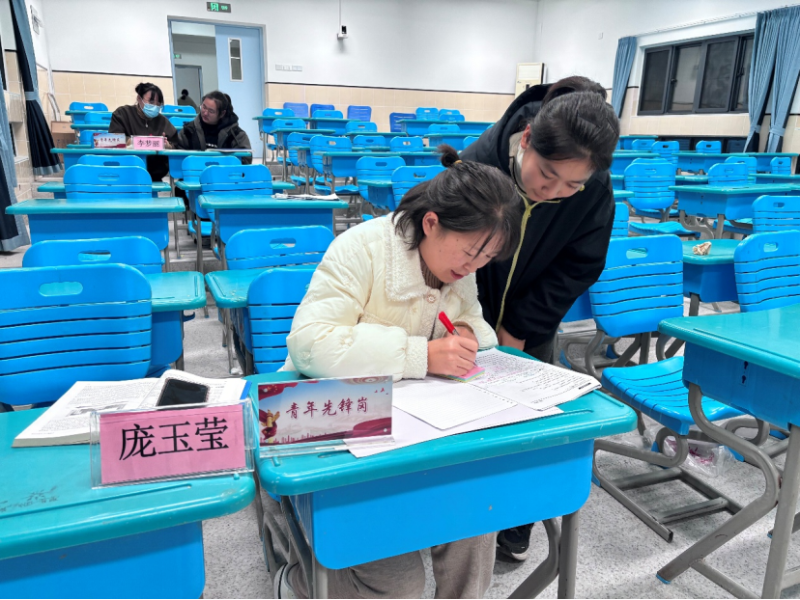 课后答疑活动稳步开展,党员教师佩戴党徽并示范引领,各位教师科学答疑并团结协作,长江路校区持续建设常态化、精细化的学业支持体系。课后答疑活动不仅切实解决学生在学习过程中的具体困难,更营造出教学相长、师生共进的良好校园氛围,让“精准指导助成长”落到实处,让“课后答疑暖人心”成为现实。