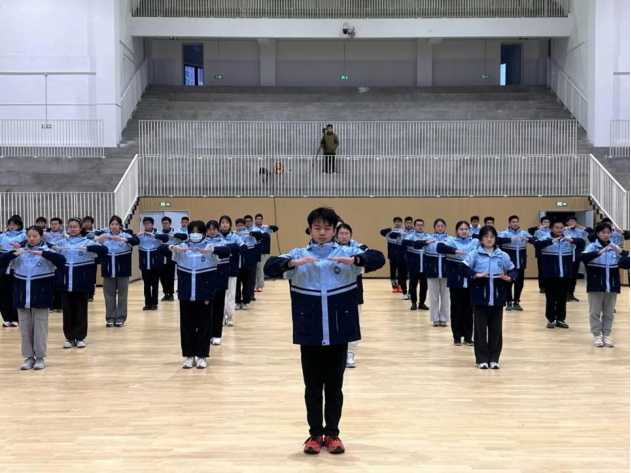 有的班级动作如雷霆万钧,气势夺人;有的班级一招一式如行云流水,章法严谨;有的班级动作整齐划一,极具感染力。同学们的精彩表现赢得了全场观众的阵阵喝彩。