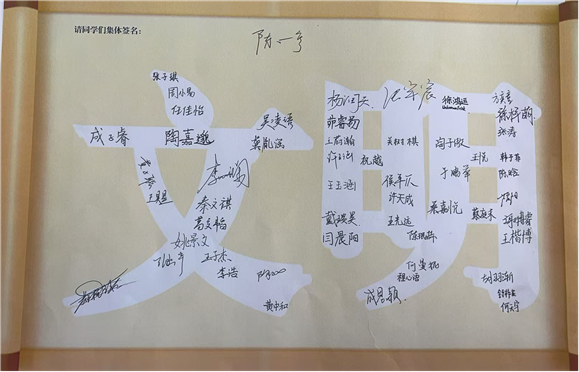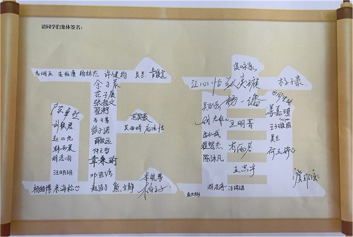 在系列活动的压轴环节,各班相继召开了形式活泼的主题班会。班主任们通过“礼仪盲盒”互动、故事分享及行为倡议等形式,鼓励学生从小事做起。班会最后,年级部发出统一倡议:将文明内化于心、外化于行,让自律成为习惯。 全体学生在印有“文明、自律、尊重、仁爱”等关键词的倡议书上郑重签名,许下庄严承诺。