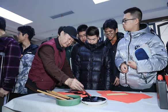 随后进入现场创作与交流环节。书画家们围绕“新春祝福”“励志求学”“校园风光”等主题,现场挥毫泼墨,创作出一幅幅笔力遒劲的书法作品和意境生动的绘画作品。师生们有序观摩,近距离感受创作过程,并不时与艺术家交流请教,现场气氛热烈融洽。