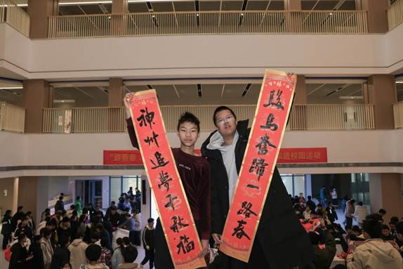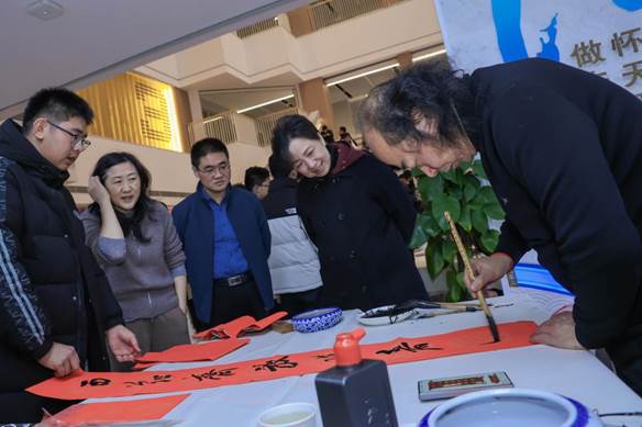 活动现场,师生们还纷纷拿出自备的纸笔或原创诗句,排队请书画家即兴创作。一幅幅承载着祝福与文化的作品在墨香中诞生,成为师生们珍藏的特别新年礼物。