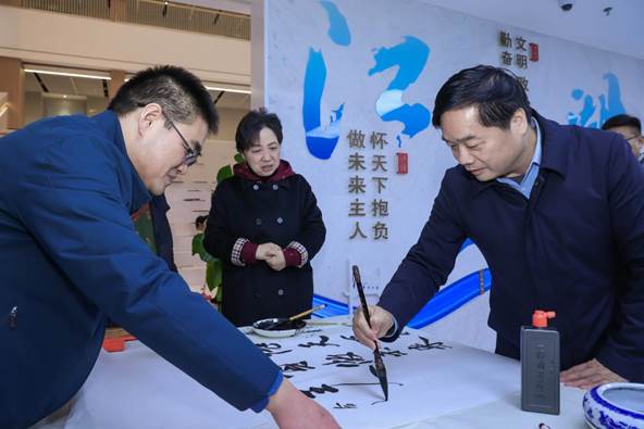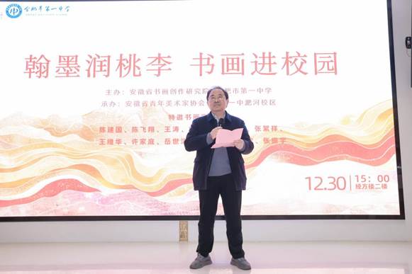 为深入推动美育教育,弘扬中华优秀传统文化,丰富校园文化生活,2025年12月30日下午,“迎新春·翰墨润桃李”书画名家进校园活动在合肥一中淝河校区成功举行。本次活动由安徽省书画创作研究院与合肥市第一中学共同主办,安徽省青年美术家协会、合肥一中淝河校区承办。十余位来自安徽省书画创作研究院的知名书画家应邀走进校园,与师生共迎新年,共话艺术。
