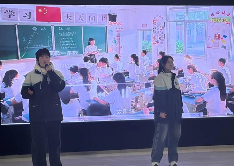 随后,学生们用歌声延续了这份跨越海峡的亲情。高一(64)班的夏雨琪同学和高二(42)班的李诗媛同学登台合唱了歌曲《我们同唱一首歌》,质朴的歌声诠释着海峡两岸血浓于水的情谊。