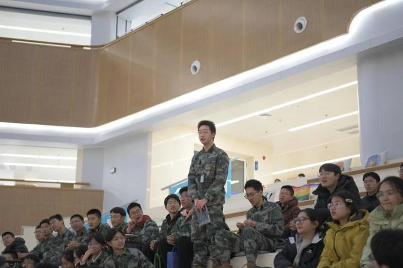 2011年退伍的通讯报务女兵陈慧作为特邀嘉宾,以“青春的答案”为题深情回顾军旅生涯。她通过边防战士冒雪执勤、山洞通讯站零差错保障演习等事例,生动诠释了“使命在肩,奋斗有我”的军人品格。她表示:“一根天线、一组密码就是守护家国的武器,电波里的坚守同样是对祖国的忠诚告白。”并在最后寄语青年学子“将个人理想融入国家发展,以青春之我守护青春之国。”发言简短有力,引发师生强烈共鸣。