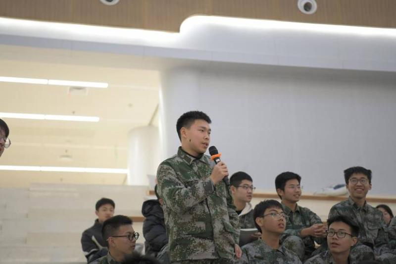 问答环节后,高二(46)班杜德茗同学以《东风-5C的东方宣言》为题进行了一场精彩宣讲,强调“关键核心技术自主可控”对维护国家安全的重要意义,引发师生对国防现代化建设的热烈讨论。