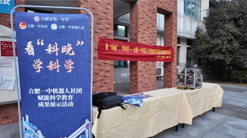 做好资源转换是本次活动周的核心目标之一,旨在将科晚科技亮点转化为可感知的校园活动资源。合肥一中滨湖校区机器人社团积极行动,于1月13日课外活动时间在合一广场开展“看‘科晚’,学科学——合肥一中机器人社团赋能科学教育成果展示活动”,该社社团成员操控曾斩获多项大奖的 VEX 机器人进行精彩表演,将“科晚”中的科技理念与机器人技术相结合,用灵动的机械动作展现科技魅力,吸引众多师生驻足观看,让抽象的科技成果变得直观可感,有效激发了学生对科技创新的兴趣。