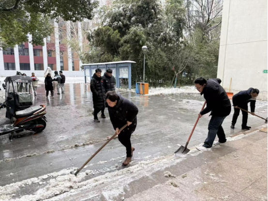 20日一早,各校区教职工、后勤人员及学生志愿者纷纷拿起工具,投入扫雪行动。校领导带头挥锹铲雪,师生协力配合,重点对校园主干道、楼梯及出入口进行清理。大家分工有序,场面热火朝天,在短时间内开辟出干净畅通的道路,确保了校园安全有序运行。