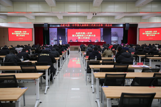 2026年2月7日上午,合肥一中在滨湖校区体育馆一楼学术报告厅隆重召开第九届教职工代表大会第二次会议。校领导班子成员、136名教代会正式代表(另有28名中层及以上干部、1名特邀嘉宾列席)共同参加会议。合肥市文教工会主席胡云祥到会指导。