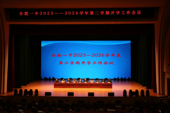 2026年3月2日上午8:30,合肥一中2025—2026学年度第二学期开学工作会议在淝河校区端馥堂隆重召开。合肥一中党委书记封安保,党委副书记、校长吴英明,党委委员、副校长张大勇、尤光雷、肖琼,校工会主席孔华,淝河校区执行副校长蔡胜国、瑶海校区执行副校长朱奇、长江路校区执行副校长汪义超及全体教职工出席大会。大会由封安保主持。
