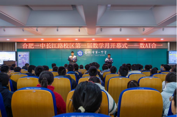 三月江淮,春意初萌;长江路畔,智慧生辉。3月12日下午5时30分,综合楼四楼报告厅内群贤毕至。合肥一中长江路校区首届数学月——“数‘AI’合一”系列活动在暮色与灯光的交织中拉开帷幕。这是一场理性与诗意的约会,更是一次数学与人工智能的深情相拥。