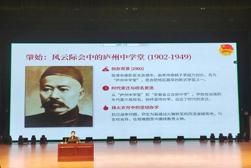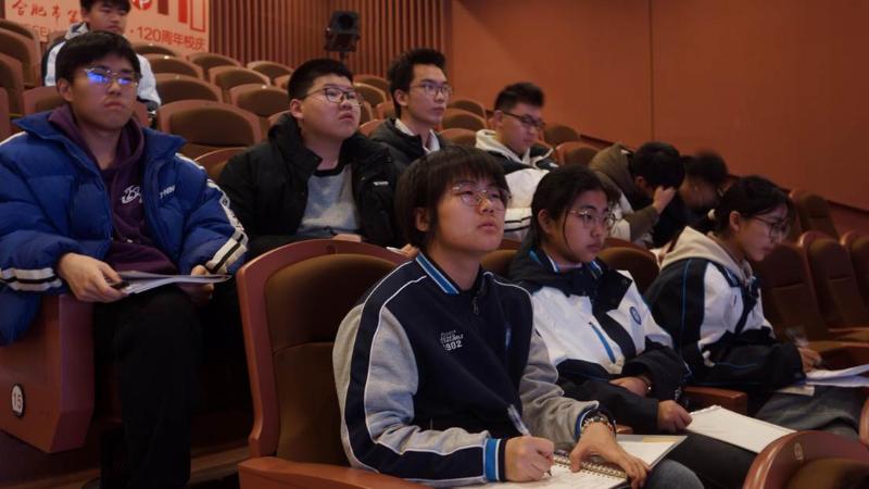 团课在热烈的掌声中拉开帷幕。吴英明校长将合肥一中“兴学救国”的初心娓娓道来:从庐州中学堂的创办到抗战时期的坚持办学,从新中国成立后的教改先锋到新时代的拔尖创新人才培养,一张张珍贵的历史图片串联起学校与国家民族同频共振的壮阔征程。当屏幕上闪过杨振宁、杨保华等杰出校友的面孔时,同学们凝神屏息,笔尖在笔记本上沙沙作响,仿佛在与百年的求索精神隔空对话。
