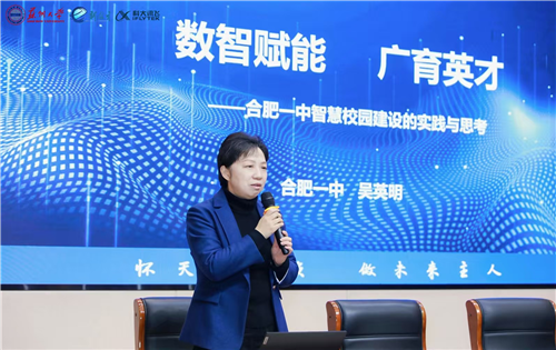 随后,校长吴英明作《AI赋能教育教学的实践与思考》的主题报告。吴校长从时代背景出发,深入阐述了人工智能技术对教育变革的深远影响,系统阐述了AI浪潮下的教育生态的重塑。吴校长向嘉宾介绍了合肥一中的百年历史和早期教育信息化的探索,结合学校实践介绍了合肥一中在教育管理、智慧课堂、个性化学习、精准教学等方面的探索成果,展示了AI技术如何帮助教师实现因材施教的教育理想。报告既有理论高度,又有实践深度,引发了与会嘉宾的强烈共鸣。