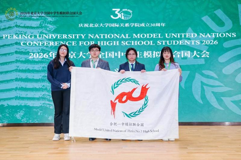 2026年3月,北京大学全国中学生模拟联合国大会在燕园隆重举行。合肥一中代表团在张叶蕾、蒯之歌两位指导老师的带领下,与来自全国顶尖中学的代表同台交流、切磋共进。代表团成员孙佳颖、曹隽哲凭借充分的会前筹备与积极的会场表现,在不同会场展现了一中学子的良好风貌。