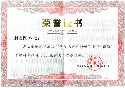 封安保书记还对新时代医学生提出殷切期望,他强调,科学精神是大医精神的技术支撑,大医精神是科学精神的价值引领,二者统一于“以人为本”的医学本质。希望医学生从学生时代做起,夯实专业基础、锤炼临床本领,涵养共情之心、坚守职业底线,努力成为有温度、有追求、有担当的优秀医者,在守正创新中传承科学与大医薪火,以实际行动践行“健康所系,性命相托”的职业誓言。