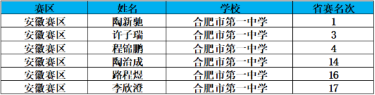 据悉,本届安徽省共19人入围全国决赛,合肥一中独占6席。其中,陶新驰同学勇夺安徽赛区第一名;许子瑞、程锦鹏、陶治成、路程煜、李欣澄五位同学分别荣获全省第3名、第4名、第14名、第16名和第17名。在整体获奖情况上,合肥一中同样硕果累累,共斩获一等奖36人、二等奖62人、三等奖76人,获奖人数及高分段人数均位居全省首位。全国决赛将于4月25日在山东青岛举行,六位合一学子将代表安徽,与来自全国各地的顶尖选手同台竞技。