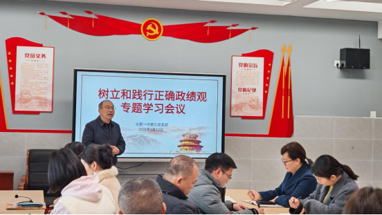 开展树立和践行正确政绩观学习教育,是新时代党员干部砥砺党性修养、提升政治能力、强化使命担当的内在要求,对推动各项工作高质量发展具有重大意义。为深入学习贯彻相关部署要求,引导支部党员牢固树立和践行正确政绩观,切实把学习成果转化为履职尽责、推动工作的实际成效,2026年3月10日,合肥一中第九党支部召开“树立和践行正确政绩观”专题学习,合肥一中党委委员、副校长肖琼出席会议。