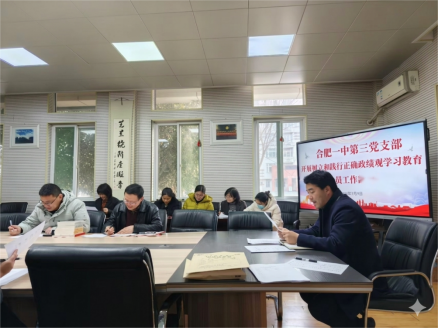为引导支部党员深刻理解、准确把握正确政绩观的丰富内涵和实践要求,进一步锤炼党性、改进作风、推动工作,2026年3月9日,合肥一中第三党支部在年级部会议室召开专题会,对树立和践行正确政绩观学习教育作出安排,会议由党支部书记徐明星主持。