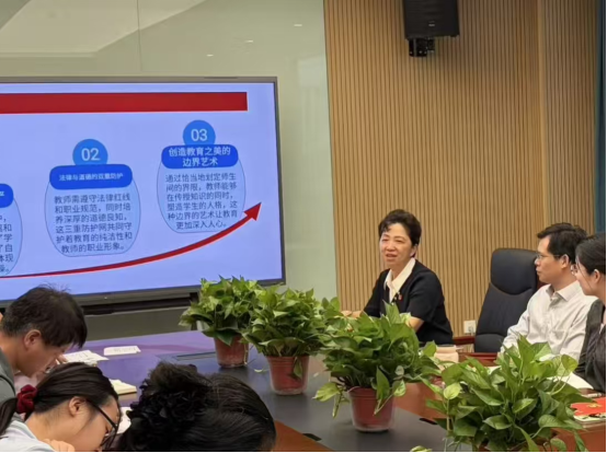 吴英明引用身边的真实案例,提醒各位党员教师要坚守廉洁底线,自觉接受社会公众、舆论的监督,维护好风清气正的教育生态。她指出,党员老师应以本次学习为契机,把边界意识融入日常教育教学,以专业素养守护教育初心,用行动诠释教师职业的神圣与担当,为学生成长搭建安全、健康、纯粹的教育环境。