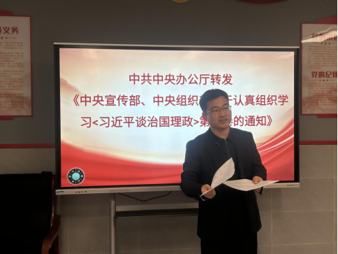 支部组织委员刘小雷传达了上级党委关于认真学习贯彻《习近平谈治国理政》系列重要著作的部署要求,并介绍了支部学习计划。