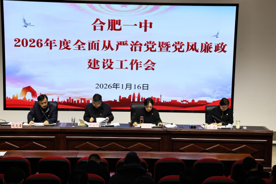 为深入学习贯彻习近平新时代中国特色社会主义思想,压紧压实全面从严治党主体责任,营造风清气正的校园政治生态和育人环境,2026年1月16日,合肥一中召开2026年度全面从严治党暨党风廉政建设工作会议,校党委班子成员、各党支部书记、支部委员及中层干部参加会议。会议由合肥一中党委委员、副校长尤光雷主持。