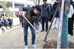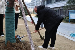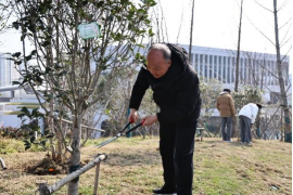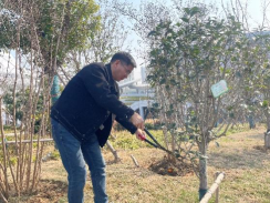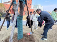 在荣誉阁广场的樱花林,技术人员介绍,樱花根系浅,春季松土能改善土壤透气性。听完讲解,党员们纷纷拿起铁锨,弯腰为樱花树松土,原本板结的土壤变得松软细碎。铁锨起落间,是对树木的用心呵护,也是对劳动精神的最好诠释。