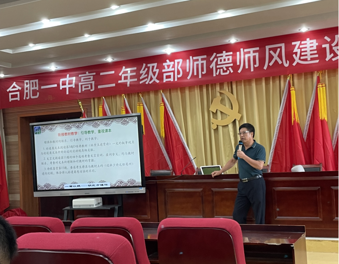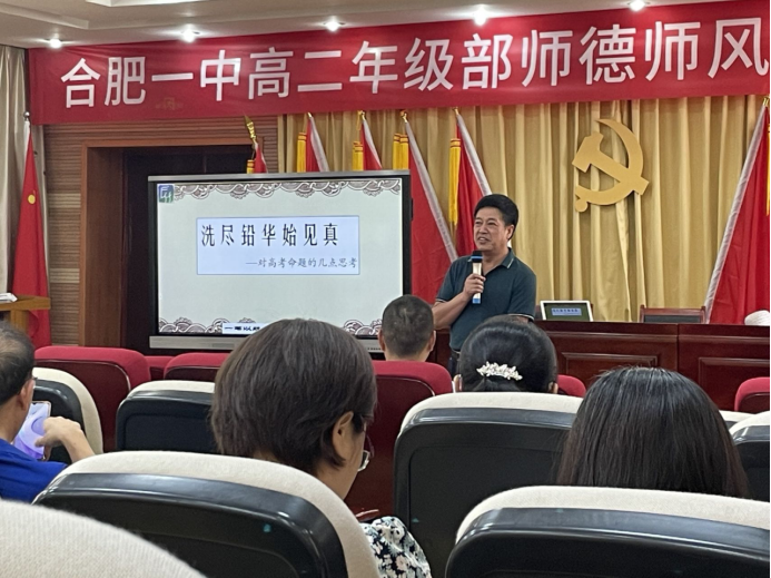 6月28日下午,合肥一中第三十五期校本教研周如期举行,语文学科老师齐聚一堂,展开以“新课程新教材实施基于课程标准的考试命题研究”为主题的研讨交流。校本培训分为专家讲座、高考试卷分析和命题实践分享三个部分。
