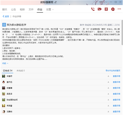 “本来我准备将咱们班QQ群名称改成‘合肥一中2022级高一25班强基竞赛群’,但又觉得太千篇一律,不够有内涵。所以我想发起为咱们班级的QQ群命名的活动。我会以作业的形式发布,大家点击作业即可上传。”