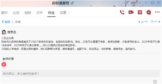 这次的征名活动,不仅是对25班意义重大,对整个“铁军”年级也有一定的促进作用。陈起标老师以征名活动的形式,展现了强基竞赛班的高手云集,促进“铁军”年级的所有同学融入共学的氛围,追赶拼搏的浪潮,创造全新的辉煌。