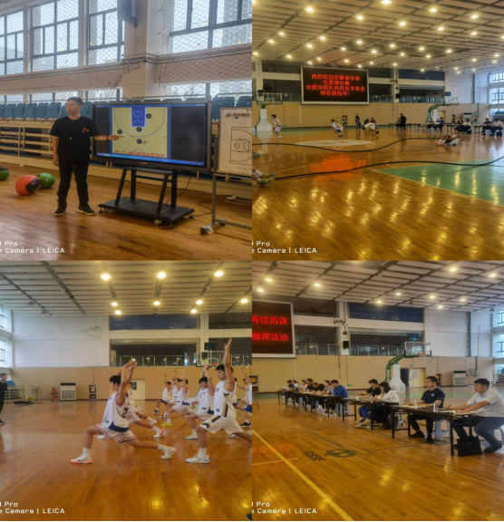 本次活动也是本届优质课比赛合肥市团队第一次现场磨课的集体教研活动。活动首先由合肥一中谷伟老师上公开课——《篮球——连续掩护》。谷伟老师全程激情满满,课堂组织井然有序,练习方法专业高效。学生们在谷老师的循循善诱下快速进入了热火朝天的练习中。来自各个学校的专家老师全神贯注的听课,不时的拿起手机进行拍照录像,认真记录。