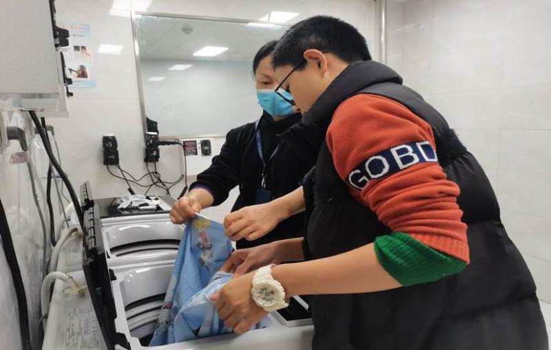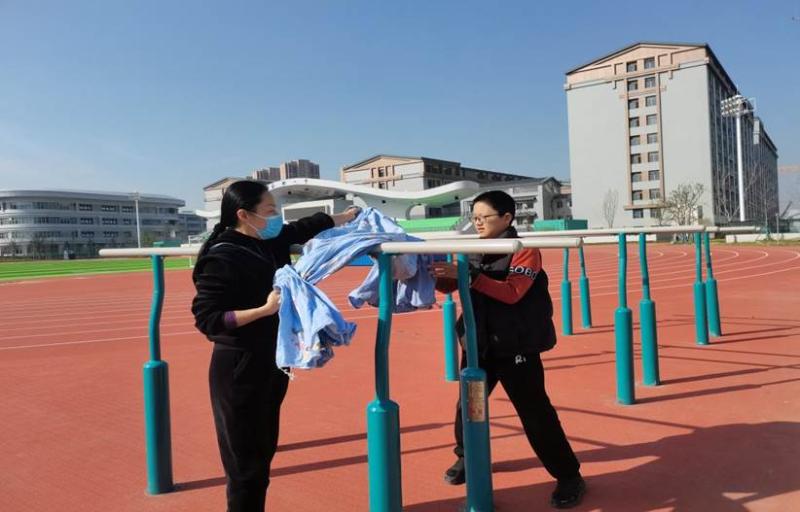 在学校领导的妥善安排下,在这个疫情特殊时期,李唯一同学并不唯一。班主任段老师时刻牵挂着李唯一同学,叮嘱生活老师在生活上帮助和照顾李唯一。生活老师韦娟教李唯一同学清洗衣物,晾晒被罩。从视频中看到唯一同学在校园的学习和生活都安排得井井有条,段老师的脸上露出了久违的笑容。