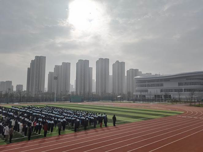随后,全体学生在高一(42)班带领下齐声歌唱校歌——《怀天下抱负,做未来主人》。身处在这一百二十年薪火相传、有魅力的校园,同学们的心中激荡起万丈豪情,大家的歌声逐发慷慨激昂。