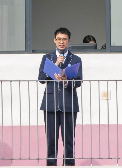 来自高一(48)班的王梓航同学以“继往开来,瑶海新篇”为主题发表了国旗下的演讲。他带领同学们重温了庐州中学堂的艰辛过往,又放眼当今不断发展壮大的合肥一中,抒发对一中的热爱与自豪。他号召同学们牢记校训,自强不息,迎接合肥一中的百廿生日和瑶海校区首届运动会。