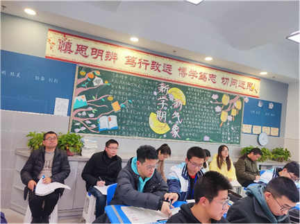 公开课结束后,化学组全体老师进行例行教研活动,化学组组长任峰老师先请郭老师对《硫及其化合物》这一节内容进行讲述,在郭老师表述完思路后,每位老师对于郭老师该节课的优缺点都表达了自己的看法。李中占老师说到,郭老师的板书设计工整漂亮,PPT 设计恰当,但是重点不够突出;王孜老师认为郭老师设计思路清晰,环节紧凑,书写方程式时建议先做些铺垫,学生书写会更从容;孟玉林老师认为郭老师的课令她受益匪浅,同时也提出了自己对于不足之处的看法,如可逆反应可以放到第六章再讲,这样课堂更连贯。